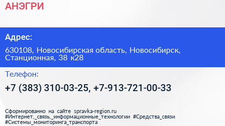АНЭГРИ по адресу 630108, Новосибирская область, Новосибирск, Станционная, 38 к28 в дальнейшем Организация, размещена в следующих категориях: