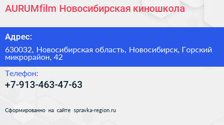 AURUMfilm, Новосибирская киношкола по адресу 630032, Новосибирская область, Новосибирск, Горский микрорайон, 42 в дальнейшем Организация, размещена в следующих категориях: