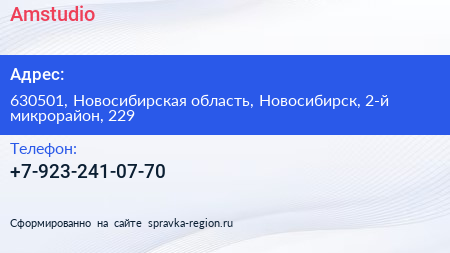 Amstudio по адресу 630501, Новосибирская область, Новосибирск, 2-й микрорайон, 229 в дальнейшем Организация, размещена в следующих категориях: