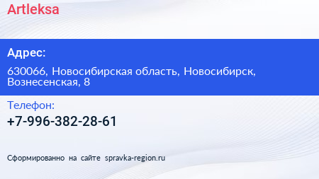 Artleksa по адресу 630066, Новосибирская область, Новосибирск, Вознесенская, 8 в дальнейшем Организация, размещена в следующих категориях:
