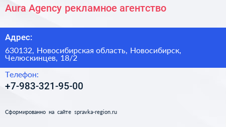 Aura Agency, рекламное агентство по адресу 630132, Новосибирская область, Новосибирск, Челюскинцев, 18/2 в дальнейшем Организация, размещена в следующих категориях: