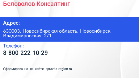 Беловолов Консалтинг по адресу 630003, Новосибирская область, Новосибирск, Владимировская, 2/1 в дальнейшем Организация, размещена в следующих категориях: