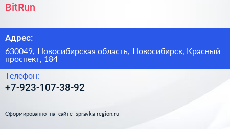 BitRun по адресу 630049, Новосибирская область, Новосибирск, Красный проспект, 184 в дальнейшем Организация, размещена в следующих категориях: