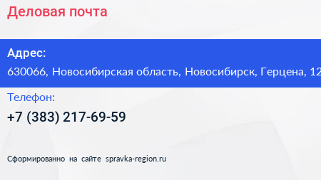 Деловая почта по адресу 630066, Новосибирская область, Новосибирск, Герцена, 12 в дальнейшем Организация, размещена в следующих категориях: