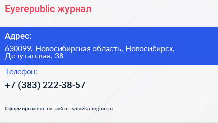 Eyerepublic, журнал по адресу 630099, Новосибирская область, Новосибирск, Депутатская, 38 в дальнейшем Организация, размещена в следующих категориях: