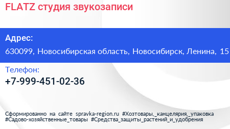 FLATZ, студия звукозаписи по адресу 630099, Новосибирская область, Новосибирск, Ленина, 15 в дальнейшем Организация, размещена в следующих категориях: