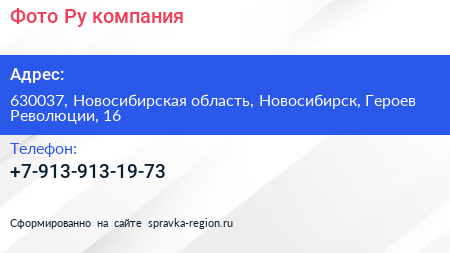 Фото-Ру, компания по адресу 630037, Новосибирская область, Новосибирск, Героев Революции, 16 в дальнейшем Организация, размещена в следующих категориях: