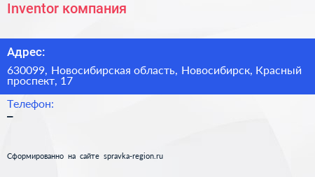 Inventor, компания по адресу 630099, Новосибирская область, Новосибирск, Красный проспект, 17 в дальнейшем Организация, размещена в следующих категориях: