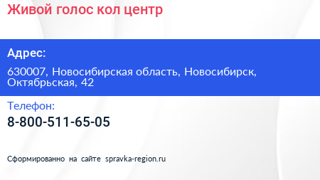 Живой голос, кол-центр по адресу 630007, Новосибирская область, Новосибирск, Октябрьская, 42 в дальнейшем Организация, размещена в следующих категориях: