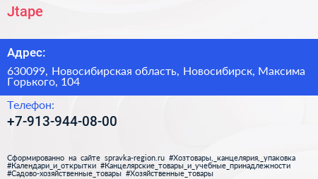 Jtape по адресу 630099, Новосибирская область, Новосибирск, Максима Горького, 104 в дальнейшем Организация, размещена в следующих категориях: