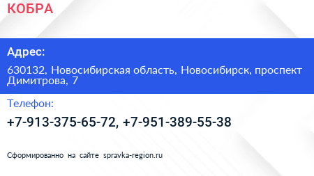 КОБРА по адресу 630132, Новосибирская область, Новосибирск, проспект Димитрова, 7 в дальнейшем Организация, размещена в следующих категориях: