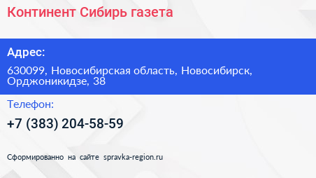 Континент Сибирь, газета по адресу 630099, Новосибирская область, Новосибирск, Орджоникидзе, 38 в дальнейшем Организация, размещена в следующих категориях: