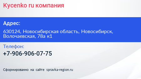 Kycenko.ru, компания по адресу 630124, Новосибирская область, Новосибирск, Волочаевская, 78а к1 в дальнейшем Организация, размещена в следующих категориях: