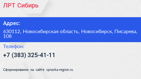 ЛРТ Сибирь по адресу 630112, Новосибирская область, Новосибирск, Писарева, 108 в дальнейшем Организация, размещена в следующих категориях: