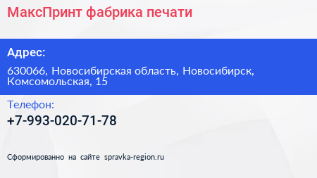 МаксПринт, фабрика печати по адресу 630066, Новосибирская область, Новосибирск, Комсомольская, 15 в дальнейшем Организация, размещена в следующих категориях: