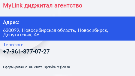 MyLink, диджитал-агентство по адресу 630099, Новосибирская область, Новосибирск, Депутатская, 46 в дальнейшем Организация, размещена в следующих категориях: