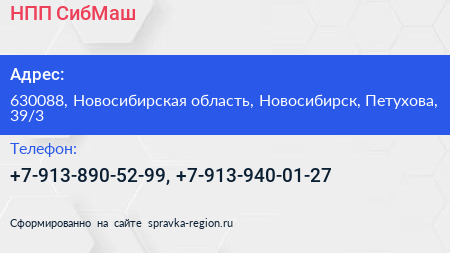 НПП СибМаш по адресу 630088, Новосибирская область, Новосибирск, Петухова, 39/3 в дальнейшем Организация, размещена в следующих категориях: