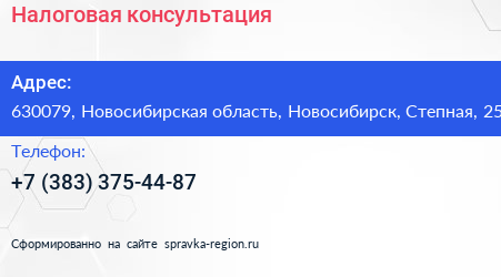 Налоговая консультация по адресу 630079, Новосибирская область, Новосибирск, Степная, 25 в дальнейшем Организация, размещена в следующих категориях: