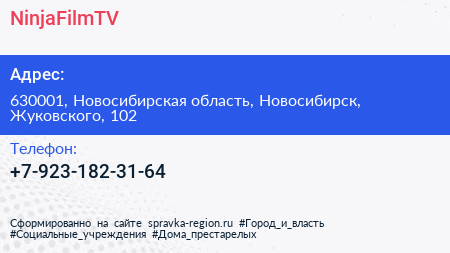 NinjaFilmTV по адресу 630001, Новосибирская область, Новосибирск, Жуковского, 102 в дальнейшем Организация, размещена в следующих категориях: