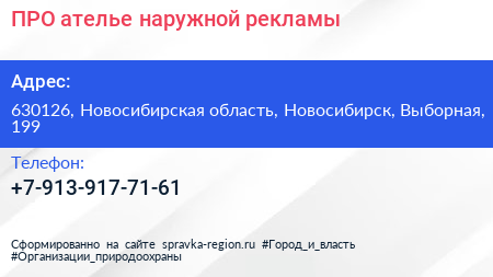 ПРО, ателье наружной рекламы по адресу 630126, Новосибирская область, Новосибирск, Выборная, 199 в дальнейшем Организация, размещена в следующих категориях: