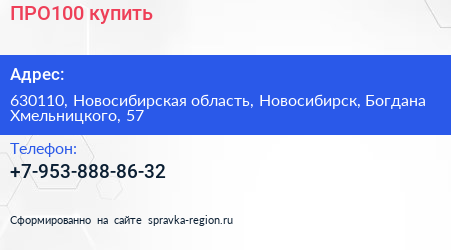 ПРО100 купить по адресу 630110, Новосибирская область, Новосибирск, Богдана Хмельницкого, 57 в дальнейшем Организация, размещена в следующих категориях: