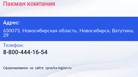 Пакман, компания по адресу 630073, Новосибирская область, Новосибирск, Ватутина, 29 в дальнейшем Организация, размещена в следующих категориях: