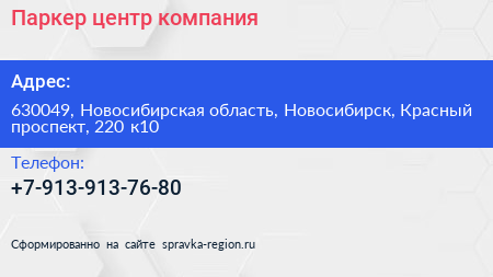 Паркер-центр, компания по адресу 630049, Новосибирская область, Новосибирск, Красный проспект, 220 к10 в дальнейшем Организация, размещена в следующих категориях: