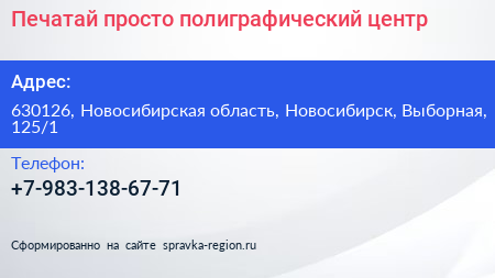 Печатай просто, полиграфический центр по адресу 630126, Новосибирская область, Новосибирск, Выборная, 125/1 в дальнейшем Организация, размещена в следующих категориях: