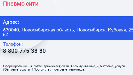 Пневмо-сити по адресу 630040, Новосибирская область, Новосибирск, Кубовая, 25 к2 в дальнейшем Организация, размещена в следующих категориях: