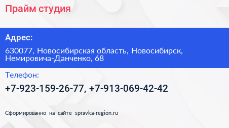 Прайм, студия по адресу 630077, Новосибирская область, Новосибирск, Немировича-Данченко, 68 в дальнейшем Организация, размещена в следующих категориях: