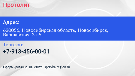Протолит по адресу 630056, Новосибирская область, Новосибирск, Варшавская, 3 к5 в дальнейшем Организация, размещена в следующих категориях: