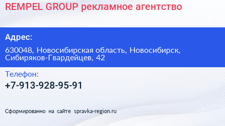 REMPEL GROUP, рекламное агентство по адресу 630048, Новосибирская область, Новосибирск, Сибиряков-Гвардейцев, 42 в дальнейшем Организация, размещена в следующих категориях: