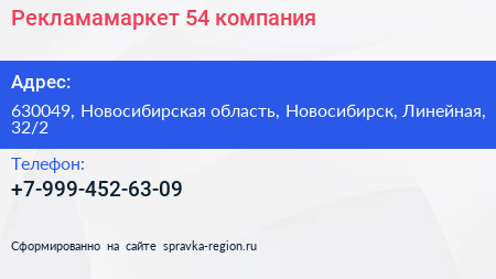 Рекламамаркет-54, компания по адресу 630049, Новосибирская область, Новосибирск, Линейная, 32/2 в дальнейшем Организация, размещена в следующих категориях: