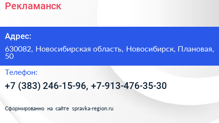 Рекламанск по адресу 630082, Новосибирская область, Новосибирск, Плановая, 50 в дальнейшем Организация, размещена в следующих категориях: