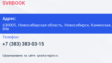 SVRBOOK по адресу 630005, Новосибирская область, Новосибирск, Каменская, 84в в дальнейшем Организация, размещена в следующих категориях: