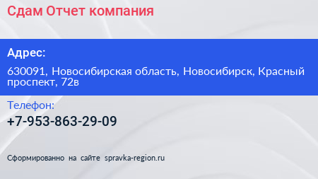 Сдам Отчет, компания по адресу 630091, Новосибирская область, Новосибирск, Красный проспект, 72в в дальнейшем Организация, размещена в следующих категориях: