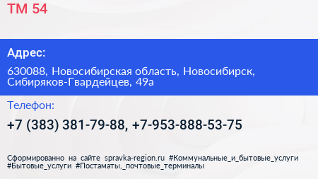 TM-54 по адресу 630088, Новосибирская область, Новосибирск, Сибиряков-Гвардейцев, 49а в дальнейшем Организация, размещена в следующих категориях: