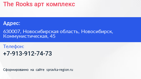 The Rooks, арт-комплекс по адресу 630007, Новосибирская область, Новосибирск, Коммунистическая, 45 в дальнейшем Организация, размещена в следующих категориях: