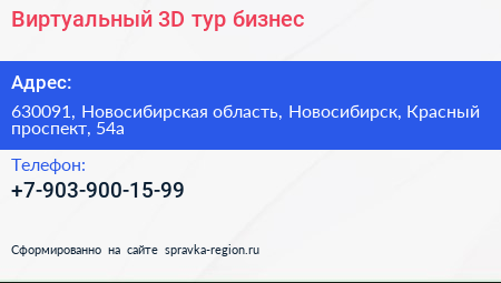 Виртуальный 3D тур бизнес по адресу 630091, Новосибирская область, Новосибирск, Красный проспект, 54а в дальнейшем Организация, размещена в следующих категориях: