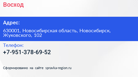 Восход по адресу 630001, Новосибирская область, Новосибирск, Жуковского, 102 в дальнейшем Организация, размещена в следующих категориях: