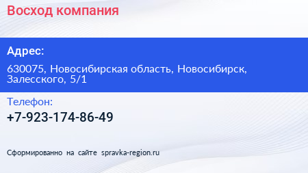Восход, компания по адресу 630075, Новосибирская область, Новосибирск, Залесского, 5/1 в дальнейшем Организация, размещена в следующих категориях: