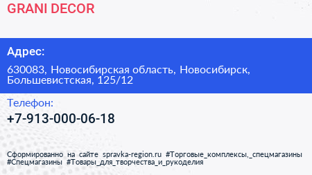 GRANI DECOR по адресу 630083, Новосибирская область, Новосибирск, Большевистская, 125/12 в дальнейшем Организация, размещена в следующих категориях: