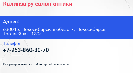 Калинза.ру, салон оптики по адресу 630045, Новосибирская область, Новосибирск, Троллейная, 130а в дальнейшем Организация, размещена в следующих категориях: