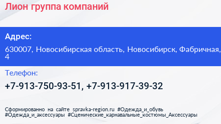 Лион, группа компаний по адресу 630007, Новосибирская область, Новосибирск, Фабричная, 4 в дальнейшем Организация, размещена в следующих категориях: