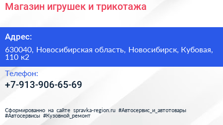 Магазин игрушек и трикотажа по адресу 630040, Новосибирская область, Новосибирск, Кубовая, 110 к2 в дальнейшем Организация, размещена в следующих категориях: