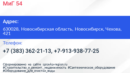 МиГ-54 по адресу 630028, Новосибирская область, Новосибирск, Чехова, 421 в дальнейшем Организация, размещена в следующих категориях: