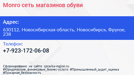 Monro, сеть магазинов обуви по адресу 630112, Новосибирская область, Новосибирск, Фрунзе, 238 в дальнейшем Организация, размещена в следующих категориях: