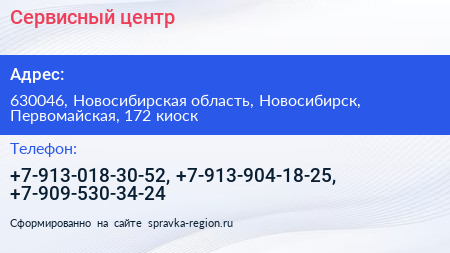 Сервисный центр по адресу 630046, Новосибирская область, Новосибирск, Первомайская, 172 киоск в дальнейшем Организация, размещена в следующих категориях: