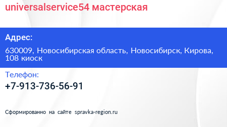 universalservice54, мастерская в Новосибирске