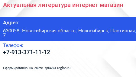 Актуальная литература, интернет-магазин по адресу 630058, Новосибирская область, Новосибирск, Плотинная, 7 в дальнейшем Организация, размещена в следующих категориях: